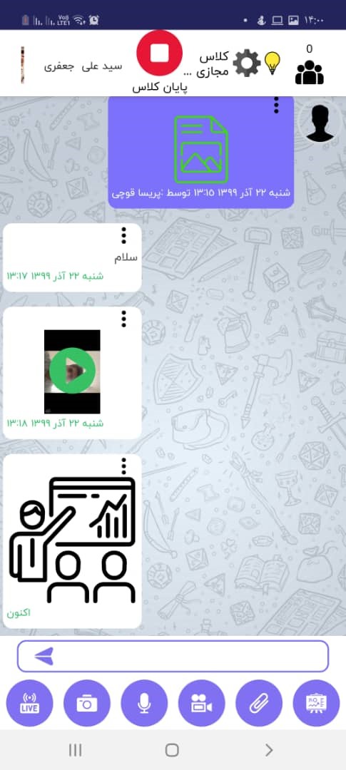 ۳. معلم میتواند از ابزار های در یافت و ارسال (پیام ، تصویر، فیلم و فایل ) مانند سایر پیام رسان ها استفاده کند